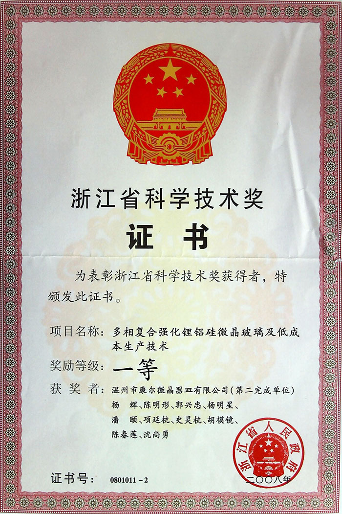 浙江省科學技術二等獎證書